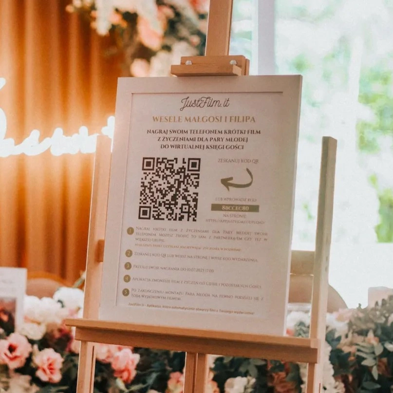 Zaangażuj swoich Bliskich w wyjątkową atrakcję! Uratuj setki pełnych emocji zdjęć i filmów z wesela od Gości za pomocą kodu QR. Stwórz piękną galerię online i pamiątkę na lata! ✨